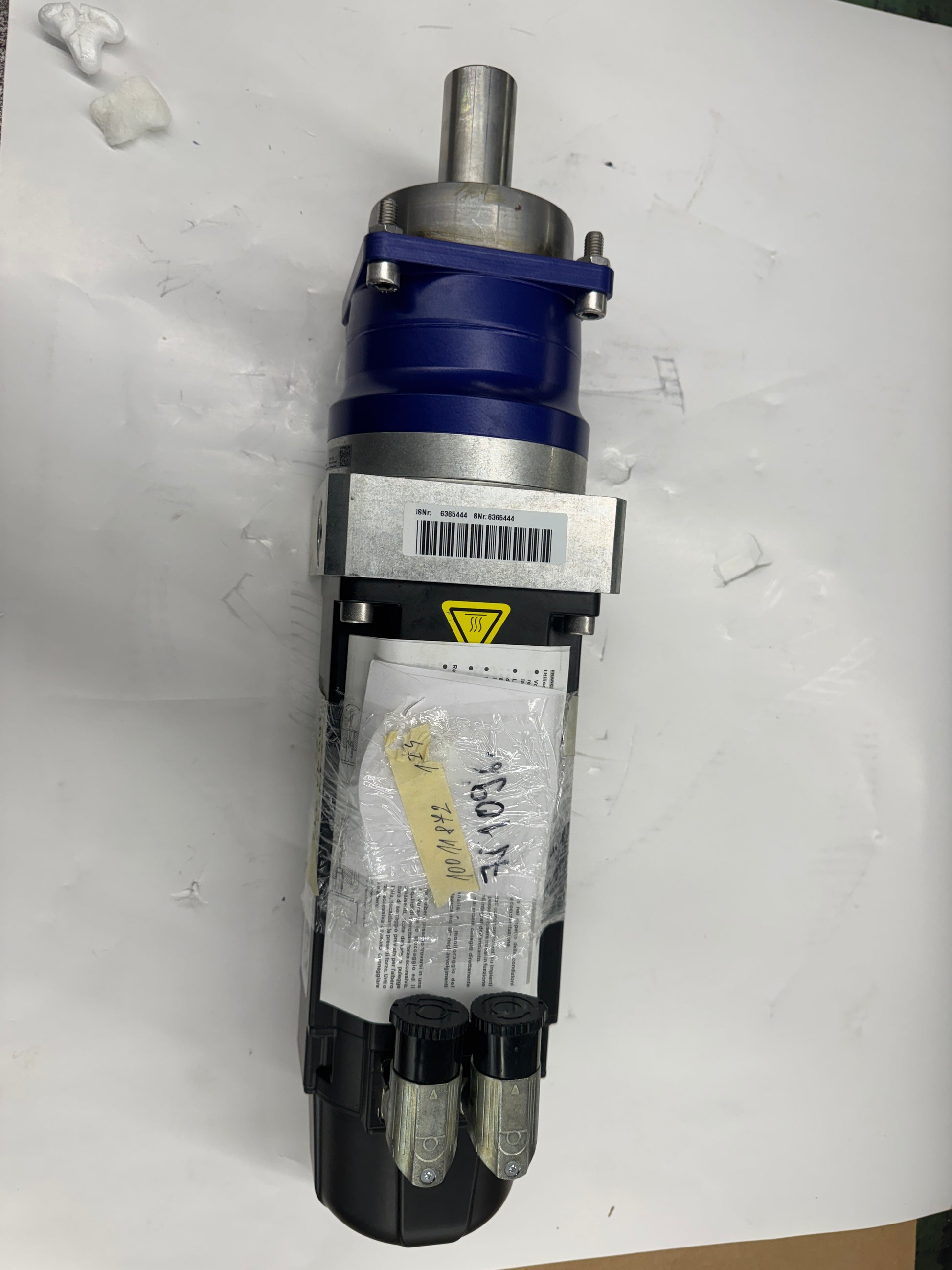 The assembly is presented as removed from service. No testing claims are made. Brake connector and encoder interface are present per nameplate confirmation.